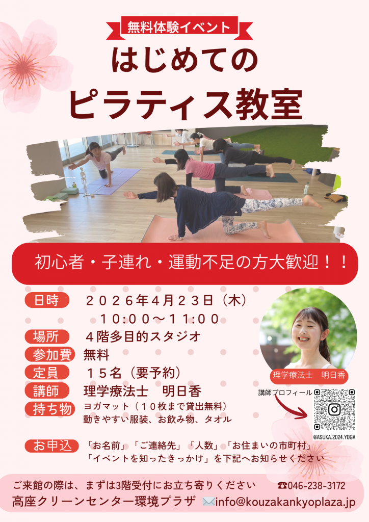 2026年4月23日(木) 【無料】はじめてのピラティス教室 参加者募集中!